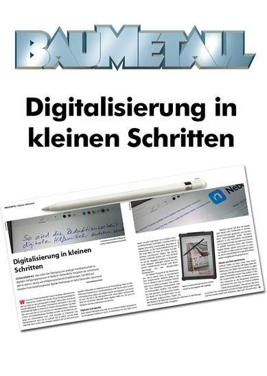 Ergänzend zum BAUMETALL-Beitrag „Digitalisierung in kleinen Sachritten“ in Ausgabe 4/2018 veranschaulicht sein Video , wie und vor allem dass es funktioniert. Handschrift wird beispielsweise in Echtzeit erkannt und sofort in Maschinenschrift umgewandelt. Ebenfalls nützlich ist eine Skizierhilfe, die das Skizzieren von Linien und geometrischen Formen erleichtert. Alle entstandenen Notizen können in verschiedenen Dateiformaten gespeichert werden. In Maschinenschrift umgewandelte Texte lassen sich darüber hinaus in jedem gängigen Textprogramm weiterverarbeiten.