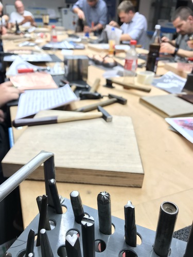 BAUMETALL-Chefredakteur Andreas Buck hat Teilnehmern des heutigen Workshops "Ziselieren" über die Schulter geblickt. Unsere Bildergalerie und das Video verdeutlichen, mit welcher Ernsthaftigkeit und Motivation hier gearbeitet wird - und in welchem Tempo!
