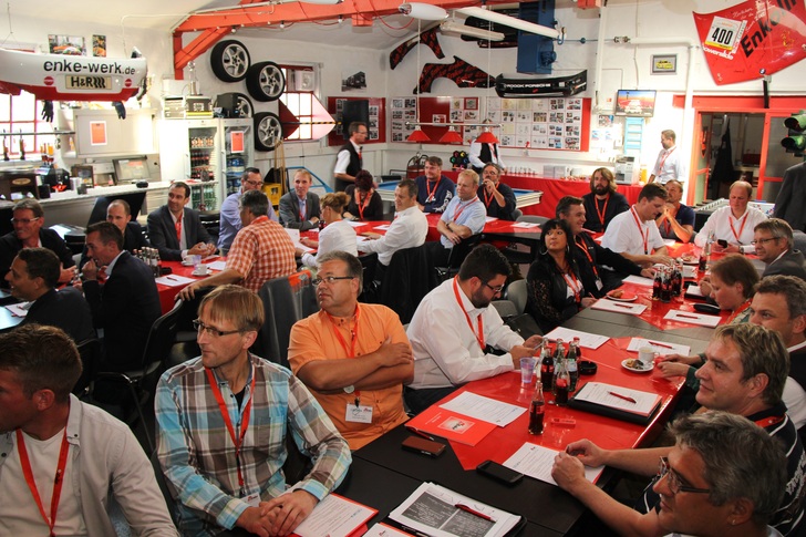 Nicht umsonst gehört eine Enke-Schulung für Insider zum Pflichtprogramm im Saisonkalender. Folglich besuchen wissbegierige Dach-Handwerker das Düsseldorfer Enke Werk in regelmäßigen Abständen. Ihr Ziel ist es, mehr über den fachgerechten Umgang mit innovativen Enke-Produkten wie Enkopur, Enke-Top oder den brandaktuellen HiLite floors zu erfahren. Aber warum eilt dem Enke-Schulungsprogramm seit Jahren dieser besondere Ruf voraus? Die denkbar einfache Antwort kommt von Enke-Geschäftsführer und Inhaber Hans-Ulrich Kainzinger persönlich: „Wir erledigen unsere Aufgaben mit Leidenschaft!“ Spätestens seit dem 11. September 2015 steht fest: Es stimmt! Mit großem Enthusiasmus begrüßte das Enke-Team rund 50 Fachleute zu einem meisterlichen Branchentreffen. Rund 40 Spenglermeister reisten aus allen Teilen Deutschlands, Luxemburg, Österreich, der Schweiz und Südtirol nach Düsseldorf um dort über die Zukunft des Meistertitels zu diskutieren. Dabei trafen sie auf zahlreiche Vertreter der Metallhalbzeugindustrie sowie der Werkzeug- und Maschinenbaubranche. Überaus interessant ist, dass während des gesamten Treffens mit keiner Silbe über Enke-Produkte gesprochen wurde. Der Leidenschaft der Gastgeber tat dies keinen Abbruch – im Gegenteil!