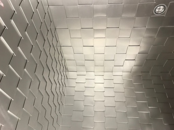 Die Schulz und Schulz Architekten GmbH präsentiert sich in einem Pavillon, der an Wänden und Innendecke vollständig mit Aluminiumschindeln bekleidet ist. Gefertigt und montiert wurden die Schindeln mit der Oberfläche Titansilber (Hersteller Kalzip) von der Sperber Klempner GmbH aus Unterwellenborn. Bilder von der Montage gibt es auf: