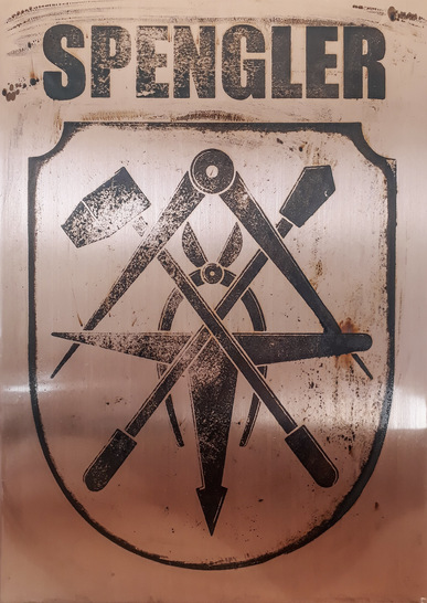 Holen Sie sich dieses einzigartige Spenglerwappen! Das 29 x 41 cm große kupferne Zunftabzeichen ist ein Unikat. Mit der richtigen Antwort auf unsere Frage ist der Copperprint zu gewinnen. Einsendeschluss ist Mittwoch, der 11. Juli .