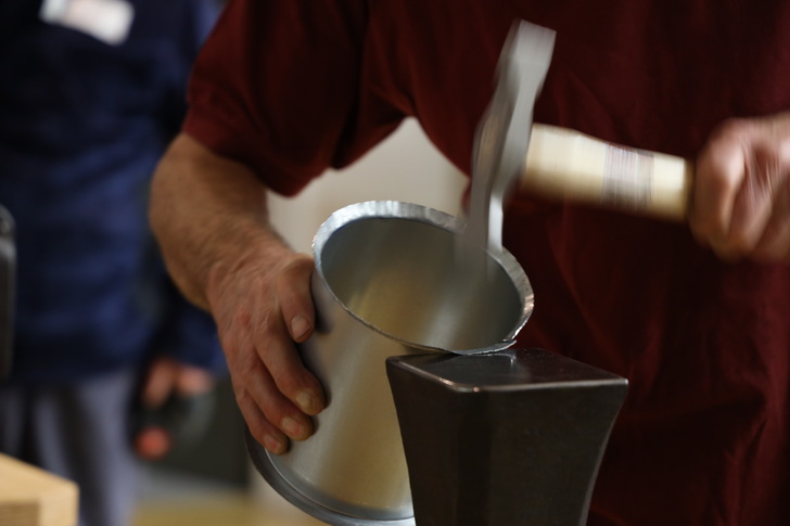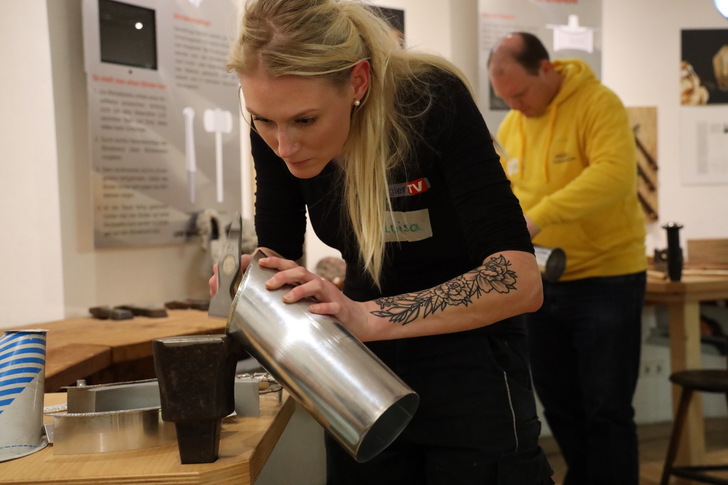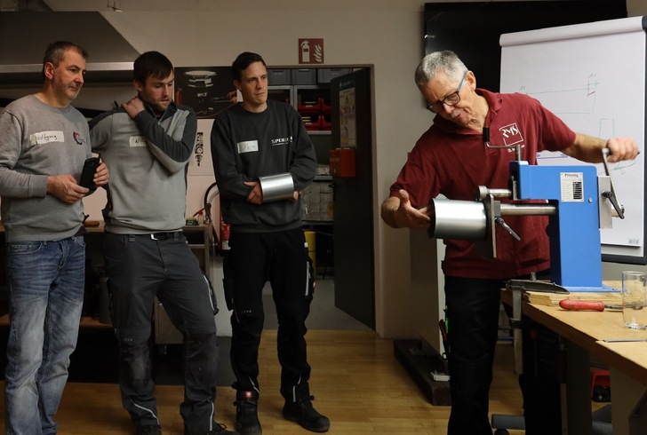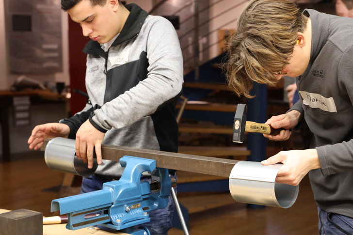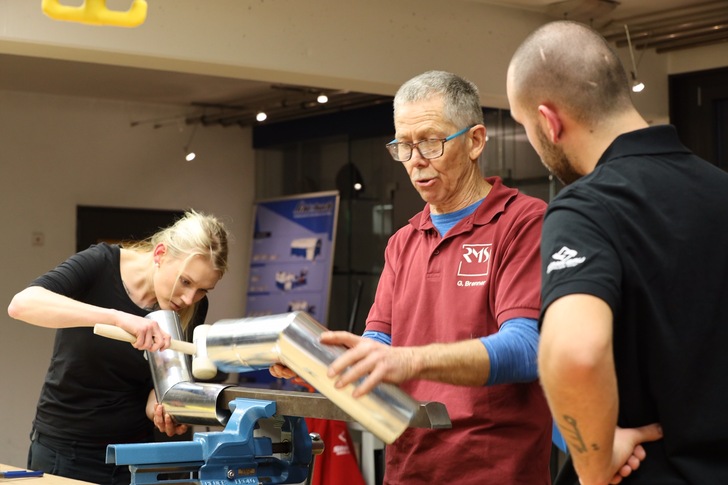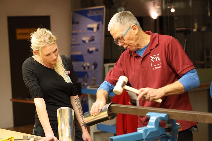 Wie Rohrwinkel, Abwicklungen und andere Techniken der Blechbearbeitung ganz einfach gehen, erklärte Gert Brenner in zwei Workshops im Museum. Erste Eindrücke bietet unsere Fotogalerie.