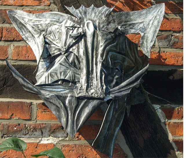 „Ich kann mir nicht erklären, was beim Hämmern im Einzelnen abläuft“, versichert Olaf Grelck zum wiederholten Male und zeigt dabei auf sein neuestes Werk. Das aus Titanzink hergestellte Wandobjekt erinnert entfernt an eine Liaison aus Heiligenfigur und Batman-Logo. Es zeigt, ebenso wie alle anderen Kunstobjekte, konkret-figürliche Formen, die aber frei interpretierbar sind. Und weil das so ist, beflügeln Grelcks energiegeladenen Kunstwerke regelmäßig die Fantasien der Betrachter. Aus technischer Sicht ist interessant, dass alle Metallfiguren, deren Gesichter oder die Stimmungen der Motive durch geschwungene Linien entstehen. Diese Gegebenheit macht Klempner und Metallverarbeiter Grelck sehr nachdenklich.