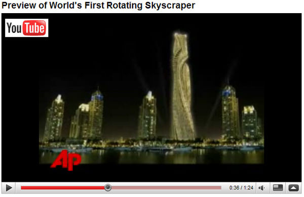 Der Rotierende Wolkenkratzer, der ständig seine Form ändert, ist das Design Produkt einer einzigartigen extremen italienischen Kreativität. Es ist das erste Gebäude in der Geschichte, das nicht statisch, sondern dynamisch ist. Es wird in jeden Moment neu geformt und erlaubt Ihnen somit, Sonnenaufgang und Sonnenuntergang von Ihrem Zimmer aus zu sehen....egal zu welcher Jahreszeit. Ein Design Konzept, das Wechsel versteht....je nach unserer Laune... Zur Zeit befinden sich zwei dieser rotierenden Gebäude in der fortgeschrittenen Phase des Designs, um neue Meilensteine der Welt zu werden. Das erste ist ein 80stöckiges Gebäude für verschiedene Nutzungen, welches in Dubai gebaut werden soll, während das zweite, ein 70stöckiges Gebäude, im Herzen der russischen Hauptstadt Moskau gebaut werden soll.