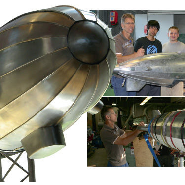 Beim Blick in die Lehrwerkstatt war ein mit Spanngurten gesicherter Zeppelin zu sehen, an dem die angehenden Klempnermeister eifrig arbeiteten.