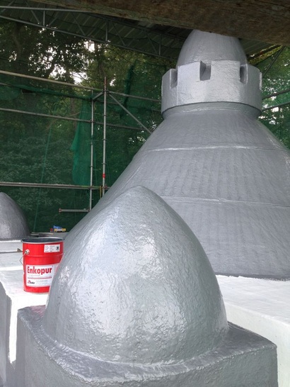 Das Ehmsendenkmal in Arnsberg wurde 1897 zum Gedenken an Ernst Ehmsen errichtet. Nach gelungener Sanierung schützt jetzt Flüssigkunststoff die Kuppeln des Bauwerkes. Detailfotos finden Sie hier. Den Beitrag zum Projekt in der neuen BAUMETALL-Ausgabe 4/2014.