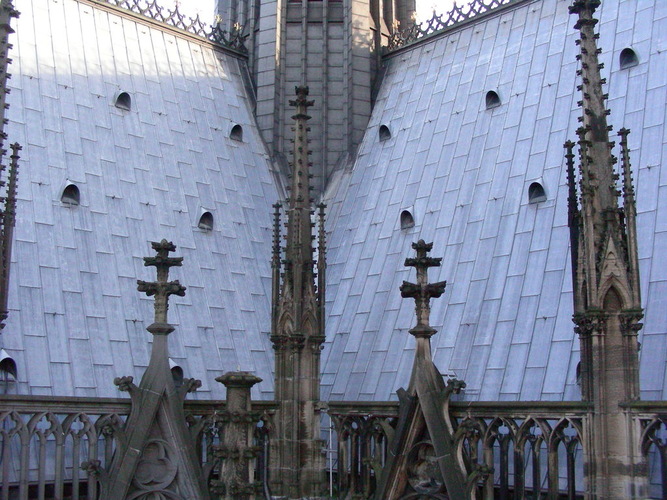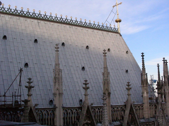 Akribisch planten, bauten und schmückten die Dombaumeister das Dach mit 11 000 Türmchen und 2000 Skulpturen. Dabei überließen sie nichts dem Zufall. In Reih und Glied ausgerichtet zeugen die Kunstwerke aus Blei und Stein von handwerklicher Spitzenleistung.