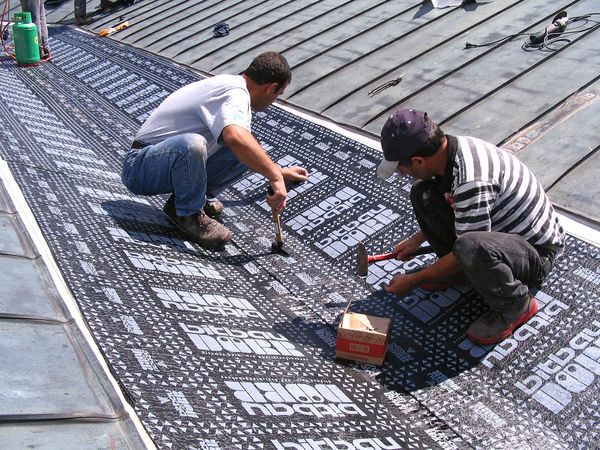 Zunächst wurde der alte Aufbau der Wiege bis auf die Holzunterkonstruktion abgerissen und als Trennlage zur Abdichtung eine neue Bitumenbahn aufgebracht. Auf der abgeflemmten Bitumenbahn wurde die Kemperol 2K-PUR Abdichtung ohne zusätzliche Grundierung verlegt. Dies ist immer dann möglich, wenn kein saugender Untergrund vorhanden ist. In allen Randbereichen, dort, wo mit Windlasten zu rechnen ist, und im Anschluß zum Kupferblech, brachten die Verarbeiter eine Kempertec R-Grundierung auf, um die Haftung auf dem Untergrund zu optimieren. Insgesamt wurden 60 Stützen für Schneefangstangen, 48 lfd. Meter Regenrinnen sowie 360 qm Fläche abgedichtet.