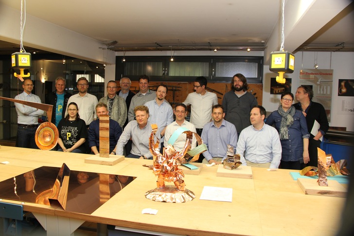 Es sind noch Plätze frei. Warum Sie dabei sein müssen, wenn Bildhauerin Manuela Geugelin und Aurubis-Experte Matthias Schoppe erneut zeigen, wie aus Kupfer mit verschiedenen Oberflächen Kupferkunst entsteht? Weil Sie Kupfer auf diese Art und Weise noch nie bearbeitet haben! Manuela Geugelin liebt Kupfer von Aurubis. Im Workshop zeigt sie, wie sich Kunstgegenstände und Skulpturen aus einer einzigen Kupfertafel anfertigen lassen. Außerdem informiert Matthias Schoppe über verschiedene Kupferoberflächen und darüber, wie vielseitig sich diese einsetzen lassen. Lesen Sie auch unseren aktuellen Artikel dazu. Impressionen aus dem Workshop im Frühjahr 2017 vermitteln unsere Fotostecke.