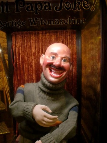 Während die Klempnerbranche vom Humor Arno Heiland´s profitiert, lachen die Lokalbesucher in Papa Joe´s Jazz Lokal in der Kölner Altstadt über Papa Joke: der einzigartige Witz- und Lachautomat. In einer Holzvitrine sitzt hinter Glas eine lustige Figur, die Arno Heiland vom Werkzeug- und Ausstattungsprofi MASC aus welchen gründen auch immer nicht ganz unähnlich scheint. Die Figur bewegt sich und erzählt einen Witz. Gleich anschließend animiert Papa Joke mit einem herzhaften und ansteckenden Lachen. Dazu schüttelt sich die Figur heftig unter komischsten Lachbewegungen. Die Witze bzw. lustigen Sprüche werden per Zufallsgenerator aus derzeit über 1.000 Witzen/Sprüchen eingespielt. Viele verschiedene Lacher werden dazugemischt. Jetzt mit Würfelbecher! Bei seinem letzten Lacher wirft Papa Joke einen Würfelbecher mit drei Augenwürfeln. Wie wär´s mit einem Thekenspiel: wer hat die höchste Würfelsumme? Wer wirft drei Sechser? Wer zahlt die nächste Runde?