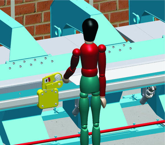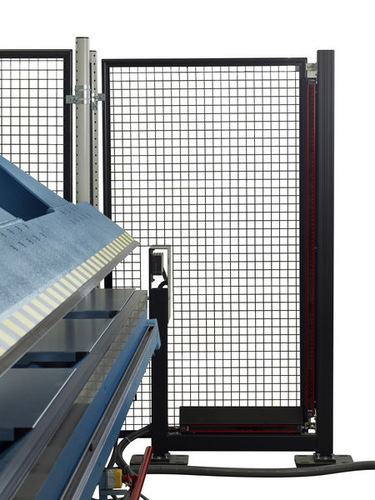 Schutzzaun zum Schutz gegen Klemmstellen durch bewegliche Zylinder, Arme und Anschlagträger: Das seitliche oder rückseitige Betreten der Gefahrenzone wird verhindert – neue Quetsch- und Klemmstellen werden nicht erzeugt. Bei der Maschinenmontage an einer Wand kann der rückseitige Schutzzaun entfallen.