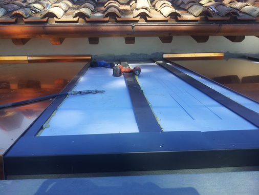 Im nächsten Schritt erfolgte die Montage der Unter- und Tragkonstruktion aus stabilen Aluminium-L-Profilen Diese wurden zunächst an den Konsolen fixiert, in Flucht und Höhe ausgerichtet und anschließend an allen Konsolen kraftschlüssig befestigt. Zwischen den entstandenen Feldern passten die Spengler anschließend Dämmplatten aus Polystyrol-Extruderschaumstoff ein. Dieser feuchtigkeitsunempfindliche und geschlossenzellige XPS-Dämmstoff verfügt über eine verdichtete Oberfläche und hohe Druckfestigkeit. XPS-Polystyrolplatten sind unverrottbar und ihre Wasseraufnahme ist gering. Die vielseitig einsetzbaren XPS-Platten sind somit für die hier beschriebene Aufgabe bauphysikalisch und baukonstruktiv bestens geeignet. Außerdem optimieren sie die Wärmedämmung des Gebäudes und sorgen zugleich als stabile Unterlage für die Begehbarkeit der Dachfläche.