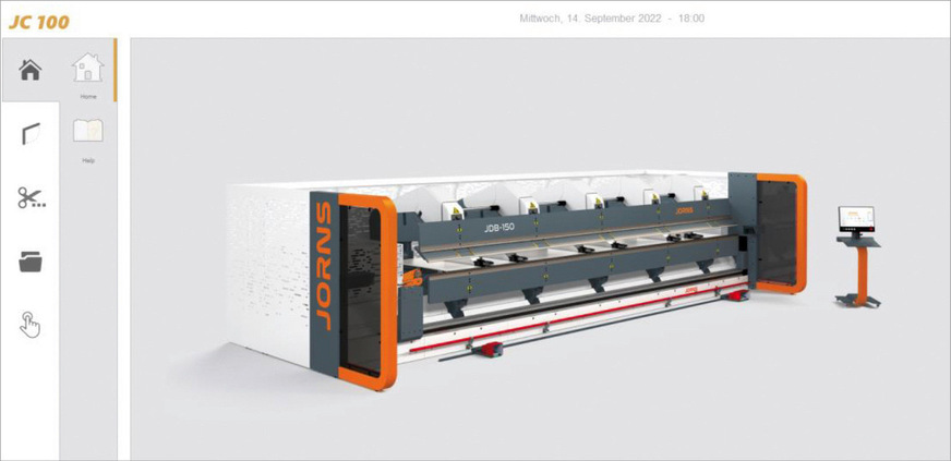 Neu bei Jorns ist die Steuerung JC100. Mit zunehmender Funktionalität der Biegemaschinen, vorhandenen Schnittstellen zu übergeordneten Softwarelösungen oder der Anbindung an Automatisationslösungen hat die Jorns AG vor 6 Jahren das Projekt zur Entwicklung einer komplett neuen (!) Steuerungsgeneration mit dem Wiener Unternehmen Microsea gestartet. Nach der erstmaligen Präsentation der neuen Maschinensteuerung JC100 (JC = Jorns Control) für die Jorns-Doppelbiegemaschine JDB auf der Euroblech 2022 ist die Steuerung jetzt auch für die Jorns-Biegemaschine JB bestellbar. Ergänzend dazu kann die Office-Software JC100 Office auf einem Büro-PC installiert werden, um maschinenspezifische Biegeprogramme für Jorns-Biegemaschinen zu erstellen. Maschinenparameter und Biegeprogramme werden dabei über gemeinsame Bibliotheken synchronisiert. Ebenfalls neu ist die direkte Schnittstelle der Maschinensteuerung zur Bendex Enterprise Suite. Die direkte Integration ist überaus praktisch: Beispielsweise kann ein Biegeprofil mit Kantungen, Ausklinkungen, Löchern und Gehrungsschnitten mithilfe der JC100 direkt aus dem übergelagerten Bendex Enterprise Suite System bezogen werden. Ein manueller und dateibasierter Datenexport in einem Übergabeformat wie bspw. XML ist somit nicht mehr nötig, kann aber für andere Systeme/Software weiterhin eingesetzt werden. Darüber hinaus bieten Jorns und Krasser eine direkte Schnittstelle an. Dadurch kann mit der JC 100 auf der Biegemaschine ein Zuschneideauftrag definiert werden. Der Vorteil: Biegeprofile können mit entsprechender Abwicklung und Länge, Profilname, Stückzahl, Materialart und Materialstärke an Krasser exportiert werden. Auf der Krasser-Spaltanlage werden dann die benötigten Zuschnitte hergestellt und mit einem Identifikationskleber inklusive QR-Code versehen. Dieser stellt wiederum die Schnittstelle zum Biegeprogramm sicher, da mit dem Scannen des Codes das dazu passende Biegeprogramm an der JC100 aufgerufen werden kann.