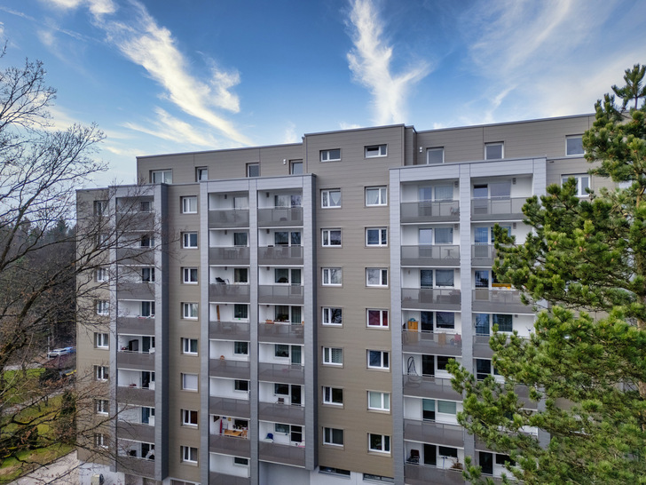 Das Planum Fassadensystem gewährleistet einen bauphysikalisch korrekten Aufbau. Da die Wärmedämmung und die Fassadenbekleidung getrennt voneinander angeordnet sind, kann Feuchtigkeit sicher abgeführt werden, ohne Schaden an der Gebäudesubstanz anzurichten. Die flexible Befestigung der vorgehängten Konstruktion ermöglicht außerdem den Einsatz unterschiedlicher Dämmstoffdicken. Gleichzeitig ist der Ausgleich von vorhandenen Toleranzen im Mauerwerk möglich. Damit zeichnet sich das System gerade auch für den Einsatz im Sanierungsbereich an Bestandsgebäuden aus – wie für das Hochaus an der Waldstraße 15/17 in Lenzig.