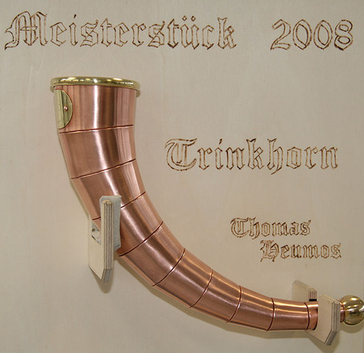 Thomas Heumos: Kupfer-Trinkhorn nach innen gefalzt, mit Innenrohr aus Titanzink als stumpf gelötetes Wickelrohr |