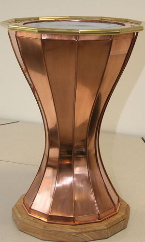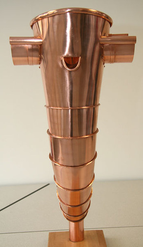 Johannes Tous: Konischer Gliederbogen mit Notüberlauf aus 0,6 mm starkem Kupfer. Eine 3 mm Drahteinlage stabilisiert den Überlauf |