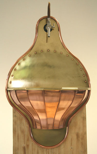 Florian Riedl: Wandbrunnen mit geschlitzten Messingrohren. Das Innenteil ist demontierbar |