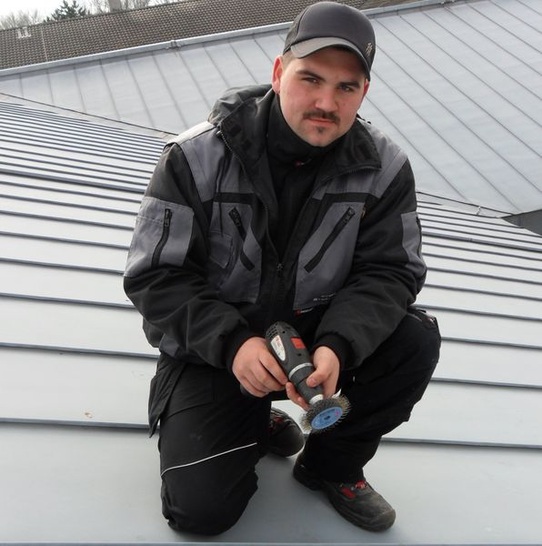 Zufriedene Tester waren auch die Kollegen der Baublechnerei Trunk aus Ettlingen. Wo früher Topfbürsten, Schleifpapier, Schaber und Drahtbürsten zum Einsatz kamen verwenden die Blechner heute rotierende Draht-Bürsten. Die Ergebnisse sind überzeugend und die Arbeitszeit extrem kurz.