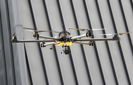 Wie der Blick aufs Dach ohne Leiter oder Gerüst ermöglicht wird, veranschaulichte Dronenpilot und Klempnermeister Frank Preuss vom Schramberger Fachbetrieb Maurer & Kaupp GmbH & Co Kg. Sein leistungsstarker Hexacopter – ein ferngesteuertes Fluggerät mit sechs Rotoren – trägt Foto- und Videokameras mühelos in große Höhen. Eine spezielle Kamera-Aufhängung (Gimbal) sorgt dafür, dass die Kamera unabhängig von der Fluglage stets horizontal ausgerichtete und verwacklungsarme Bilder erzeugt. Aufnahmen dieser Art können gelungene Arbeiten in der Referenzliste abbilden oder aber zu Inspektionszwecken herangezogen werden. Erfahrene Piloten fliegen zentimetergenau an Turmspitzen, Rinnenkessel oder Verwahrungen heran – die Aufnahmen können anschließend beurteilt und weitere Schritte eingeleitet werden.