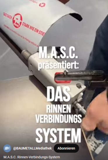 In diese Tiefsicken werden spezielle, selbstklebende Lippendichtprofile eingelegt. Alternativ ist es auch möglich, mit Rinnenklebstoffen oder hochwertigen Silikonen zu arbeiten. M.A.S.C. empfiehlt den Einsatz des Systems samt den dazu lieferbaren Lippendichtprofilen zum Beispiel bei der Montage von Dachrinnen aus oberflächenbeschichteten Baumetallen. Werkstoffe wie farbbeschichtetes oder zinkplattiertes Aluminium werden dabei ebenso genannt wie solche aus voroxidiertem Kupfer und vorbewittertem Titanzink. Ein BAUMETALL-TV-Anwendervideo veranschaulicht die einfache Anwendung des Systems.