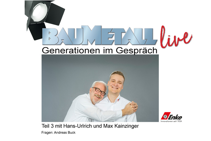 Bei Enke ist man stolz auf die fast 100-jährige Geschichte. Das spürt wahrscheinlich jeder, der mit den Mitarbeitern des E-Teams zusammentrifft. Nicht umsonst ist der Slogan „Wir bei Enke“ neuerdings sogar auf dem knallroten Enke-Corona-Mund-Nasenschutz zu lesen. Seit 2018 ist Max Kainzinger in vierter Generation im Unternehmen tätig. Für BAUMETALL Grund genug, Chef und Sohn zum Interview zu bitten. In Enke-typischer Machart gaben Inhaber und Geschäftsführer Hans-Ulrich Kainzinger sowie Sohn Max Kainzinger Einblicke in geschäftliche aber auch private Bereiche des Miteinanders.