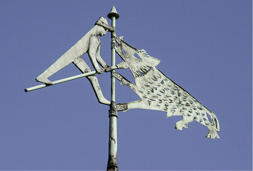 Seit Jahrhunderten zeigen uns Wetterfahnen, woher der Wind weht. Von der Antike bis ins 19. Jahrhundert waren sie als Instrument zur Wettervorhersage in Gebrauch, anfänglich vor allem auf Schiffsmasten, später auch auf Gebäuden. Da inzwischen andere, feinere meteorologische Methoden diesen Zweck übernommen haben, ist das einst rein praktische Werkzeug zum Dekoelement avanciert. In der traditionellen Architektur sind Wetterfahnen ein fester Bestandteil repräsentativer Bauornamentik und geben in vielen Fällen einen Hinweis auf den Besitzer oder die Funktion des Gebäudes. Wenn man mit offenen Augen und dem typischen Hans-guck-in-die-Luft-Klempnerblick durchs Leben geht, der stets auf Dach- und Fassadendetails gerichtet ist, kann man sie auf Turmspitzen, Kirchen, Rathäusern, Schlössern und auch auf privaten Wohnhäusern entdecken. Einige Bilder von besonders schönen Exemplaren stellen wir hier vor. Weitere sehenswerte Wetterfahnen finden Sie auch in unserem Online-Extra sowie auf unserer Facebookseite.