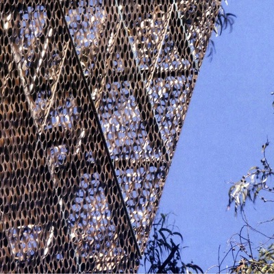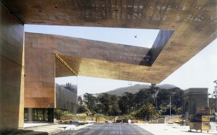 Mit einer beispiellosen Fassadengestaltung von Herzog & de Meuron entstand an der amerikanischen Westküste ein neuer Superlativ im Fassadenbau: Nie zuvor kam so viel Kupfer für eine Gebäudehaut zum Einsatz. Tausende von Kupfertafeln der Marke Tecu Classic in unterschiedlicher Größe und Form, individuell geprägt und perforiert, bekleiden die Fassade des De Young Memorial Museums in San Francisco. Um eine möglichst weitgehende Anpassung der modernen Architektur an die natürlichen Vorgaben der umgebenden Parklandschaft zu erreichen, kamen tausende von Kupfertafeln mit individuellen Mustern – geprägt und perforiert – zum Einsatz. Über 420 t Kupfer bilden die rotbraune Außenhaut des neuen De Young Museums. Die Kupfertafeln wurden von KME in Deutschland hergestellt und von der Firma A. Zahner Architectural Metals in Kansas City, einem bekannten Spezialisten für anspruchsvollen Metallbau in der Architektur, verarbeitet. In enger Zusammenarbeit mit den Projektarchitekten Fong & Chan Architects und mit umfangreicher Projektberatung durch KME entwickelte A. Zahner ein individuelles System von Kupferpaneelen, das der eigenwilligen Architektur von Herzog & de Meuron entspricht.