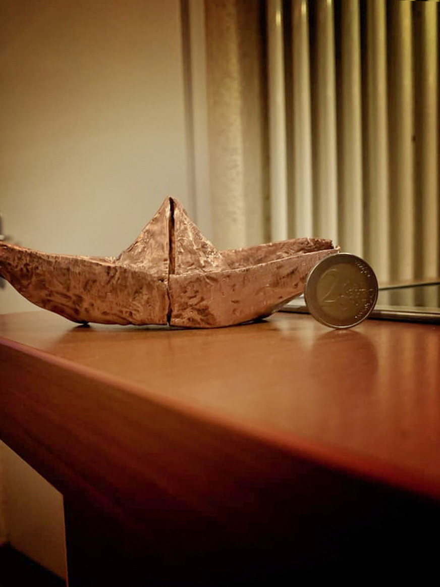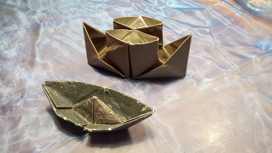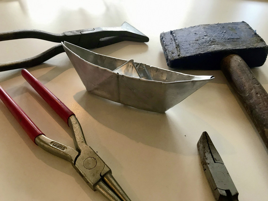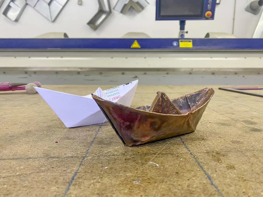 Original und Fälschung! Keine Frage – waschechte Klempner falten Papierschiffe aus Kupfer