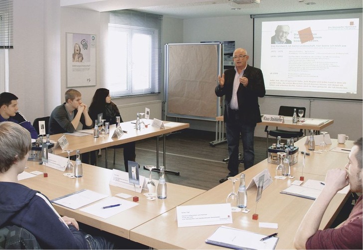 Rechtzeitig zum Auftakt der Seminarsaison 2014 war BAUMETALL zu Gast bei einem Spitzenseminar für Auszubildende im Handwerk. Die von Klaus Steinseifer entwickelte Basisqualifizierung für Auszubildende trägt den Namen „Fit für den Job“. Während des eintägigen Seminars gelingt es dem routinierten Referenten und Trainer immer wieder seine Teilnehmer abzuholen und für das Handwerk zu begeistern. Dies belegen die Teilnehmer zum Beispiel, indem sie auf „Steinis“ Facebookseite posten, sich per WhatsApp melden oder E-Mails an den Vortragsprofi schreiben. Kurz: Klaus Steinseifer kennt nicht nur den Schalter, der bei den Jugendlichen das Motivationsprogramm startet, sondern er drückt ihn auch regelmäßig.