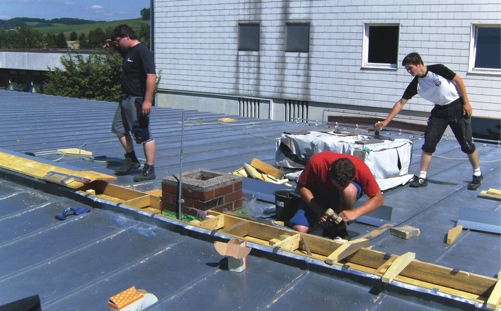 Als ehemaliger Mitarbeiter des Titanzink-Herstellers Rheinzink nutzte Erhard Pongratz bestehende Kontakte. Er schilderte der Rheinzink-Geschäftsleitung die aus Spenglersicht unzumutbare Situation und berichtete von dem Vorhaben gemeinsam mit „seinen“ Auszubildenden, das Dach wieder auf Vordermann zu bringen. „Das war die Geburtsstunde eines fantastischen Projektes“, erinnert sich der Berufsschullehrer, der sich als Projektleiter bis heute um zahlreiche praxisnahe Aktivitäten der Waldkirchner Bildungsstätte kümmert. Auch der Zinkproduzent aus Datteln war von der Idee begeistert und sagte spontane Unterstützung zu. Dann ging es Schlag auf Schlag: 9 t Titanzink wurden angeliefert, der Landkreis steuerte rund 20000 Euro für die erforderliche Holzunterkonstruktion bei und die von der Idee ebenfalls begeisterten Schüler machten sich an die Arbeit, erste Titanzink-Scharen anzubringen.