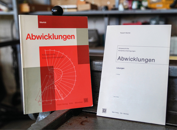 Das Fachbuch „Abwicklungen“ von Rudolf Werklé wurde in einem Schuber mit zwei Büchern geliefert. Das erste Buch mit 112 Seiten und roter Vorderseite hat den Titel „Abwicklungen; Körperschnitte, Körperdurchschnitte“, das zweite, mit 48 Seiten und weißem Cover, ist das zugehörige Lösungsbuch. Konzipiert wurde die Buchreihe für Auszubildende und angehende Meister in Handwerks- und Metallberufen, die von Dozenten und Fachlehrern im Fachzeichenunterricht an Berufsschulen unterrichtet werden. Das zur Besprechung vorliegende Lehrbuch für Beruf und Schule erschien 1989 mit 165 Abbildungen und 34 Aufgaben als 1. Nachdruck der 7. Auflage im Stam-Verlag Köln.