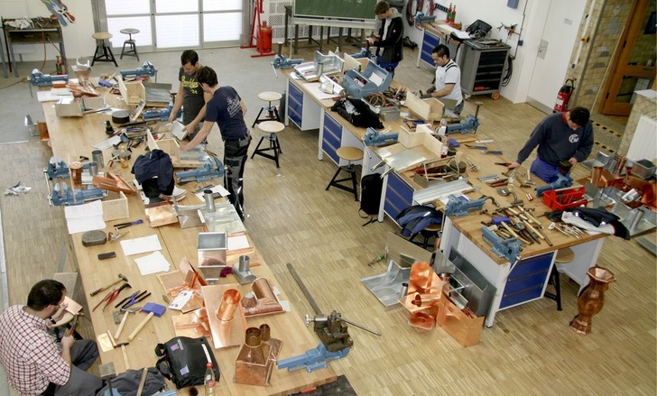 Der Meistervorbereitungskurs der Bildungsakademie Ulm beinhaltet alle erforderlichen Lehrgänge zur Vorbereitung auf die Klempnermeisterprüfungsteile I und II. Voraussetzung zur Teilnahme ist die handwerkliche Gesellenprüfung (oder eine entsprechende Abschlussprüfung) im Klempnerhandwerk. Die Teilnahme am Vorbereitungslehrgang Teil I und II wird erleichtert, wenn Teil III der Meisterprüfung bereits mit Erfolg abgelegt wurde und PC-Grundkenntnisse in Word und Excel vorhanden sind. Neben dem praktischen Training gehören auch die Vermittlung fachtheoretischer Kenntnisse sowie der Umgang mit modernen CAD-Programmen zum Unterricht. Ausbilder Armin Waldbüßer setzt dabei auf die branchenweit führende CAD-Lösung Auto-CAD, da das Programm bestens zur Herstellung der Arbeitspläne der individuellen Meisterstücke geeignet ist.