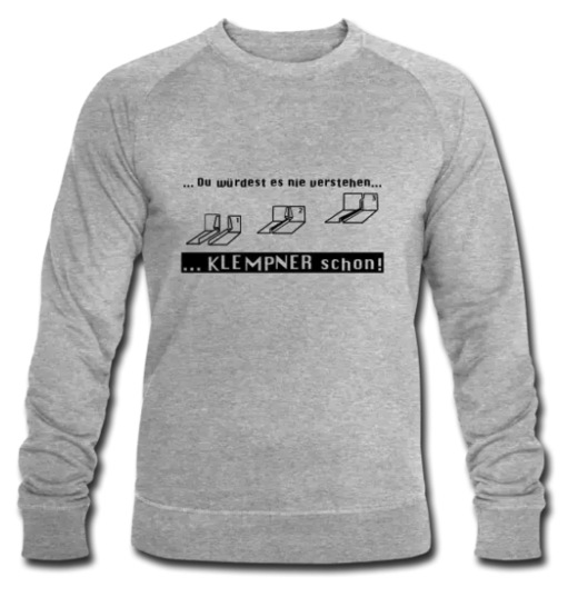 Kleider machen Klempner und Klempner-T-Shirts sorgen für Gesprächsstoff. Dieses zum Beispiel! Es macht den Betrachter neugierig und der Träger muss erklären, was der Aufdruck bedeutet. Das für Klempner, Spengler, Flaschner und Blechner erhältliche Bündnerfalz-T-Shirt sowie weitere Klempner-T-Shirts sind ab sofort per Onlineshop bestellbar. Die meisten Kleidungsstücke sind in verschiedenen Farben sowie Größen und sogar in Mundart für bayerische bzw. schweizerische Spengler oder schwäbische Flaschner erhältlich. Außerdem bietet der Shop T-Shirts und Sweatshirts mit klassischen Spenglerwappen, Mützen, Taschen