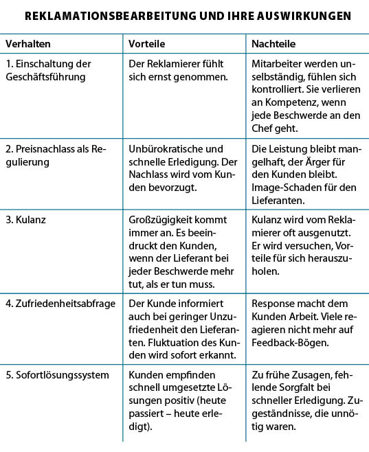 Kritische Äußerungen des Kunden werden nicht als Beschwerde definiert, vor allem wenn sie nur am Telefon vorgetragen werden. Mitarbeiter leiten kritische Bemerkungen nicht weiter, sodass der Chef nicht reagieren kann. Wer sich aber massiv beschwert, wird häufig sofort negativ eingestuft. Er gilt als schwierig, als Nörgler. Deshalb nimmt das Personal eine Verteidigungshaltung an, es stellt sich auf Abwehr ein: „Es handelt sich doch um einen Kleinkunden“, „Die Kunden werden immer schwieriger“, „Es gibt wirklich Schlimmeres“.