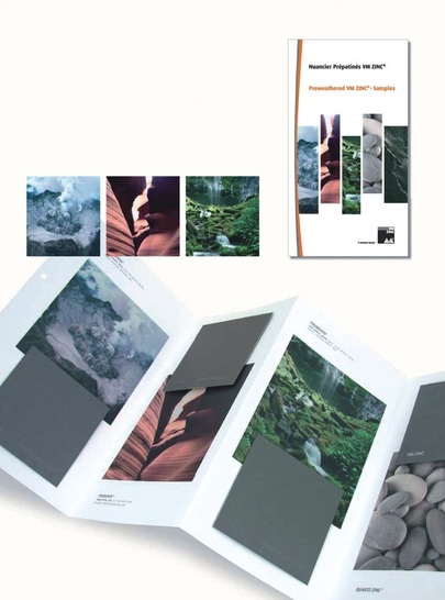 Durch den Einsatz der VM-Zinc-Produkte Anthra-Zinc, Quartz-Zinc und Pigmento, eine neue Zink-Variante in den Farben Rot, Grün und Blau, ergeben sich für Planer und Verarbeiter völlig neue Gestaltungsmöglichkeiten. Zur besseren Vermittlung dieser Vielfalt bietet der Zink-Spezialist aus Essen seit einiger Zeit eine ungewöhnliche aber äußerst praktische Arbeitshilfe in Form eines Material-Leporellos an. Der „Stabile Faltkarton“ im Format 28 x 17 cm enthält eine mehrsprachige Kurzbeschreibung der Produkte, Fotos von beispielhaften Einsatzgebieten sowie die Auflistung der Umicore-Niederlassungen und Agenturen in Europa, Amerika, Australien und Asien. Der eigentliche Clou sind die herausnehmbaren Materialproben von Anthra-Zinc, Quartz-Zinc und den drei Pigmento-Varianten, die ebenfalls in die handliche Arbeitshilfe integriert wurden. Die Materialproben sind mit einem Klettverschluss versehen. Man kann so die Haptik des Materials erfahren, die Farbwirkung als solche erkennen und in Bezug auf Farbkombinationen für die nötige Sicherheit sorgen. Der kostenlose VM Zinc-Leporello kann in Deutschland über knut.koenig@umicore.com , in Österreich über joerg.radler@vmzinc.com angefordert werden.