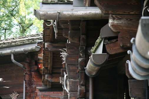 Über zwei Jahre suchte ein Eigenheimbesitzer im Hochschwarzwald nach der passenden Dachrinne für sein Walmdach. Länge und Lage der Rinne waren klar definiert und die Vorgabe des Werkstoffes machte die Suche auch nicht leichter. Besonders die Kombination von Holzrinne und Rinnenwinkel „wächst“ nicht an jeder Ecke, was den Bauherrn jedoch nicht entmutigte, weiterzusuchen. Er entdeckte und fällte schließlich einen besonders unförmig gewachsenen Baum. Dessen Stamm wurde entrindet, halbiert und bis auf eine verbleibende seitliche Wandstärke von etwa 4 cm ausgehöhlt.