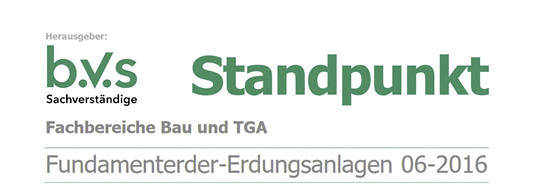 Der BVS empfiehlt, vor der Errichtung eines Fundamenterders bzw. einer Erdungsanlage die physikalischen Erfordernisse auf der Basis einer Reihe anderer Normen genau zu betrachten und abzuwägen. Den „Standpunkt“ 6/2016 finden Sie auf