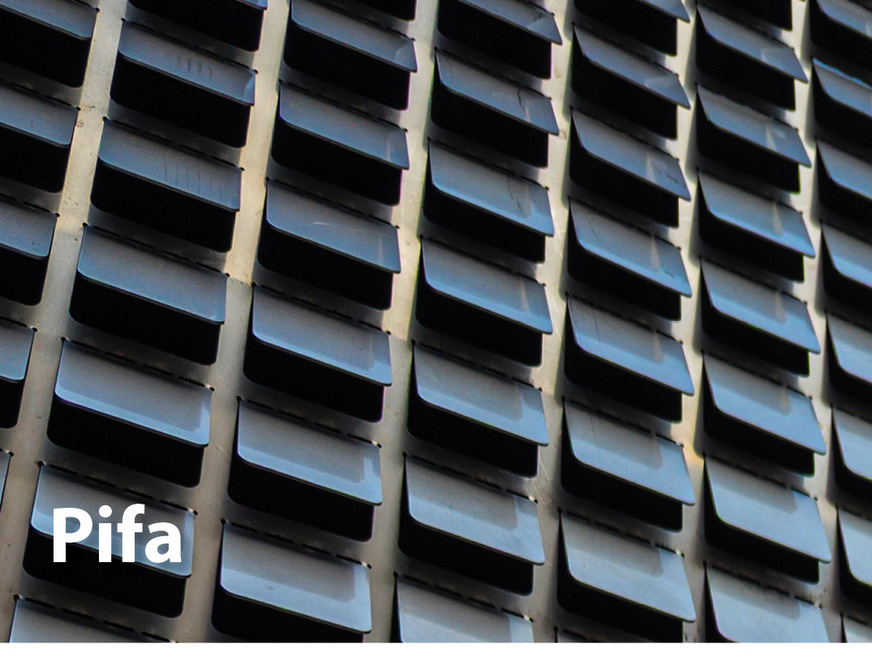 Ein weiteres Fassadenschmuckstück ist das Projekt PiFa, das in Zusammenarbeit mit der Carl Meier Sohn AG und der Erne Holzbau AG entstand. PiFa beschäftigt sich mit der Gestaltung und Umsetzung einer Fassade, bei der U-förmige Ausschnitte generiert und anschließend mithilfe eines Roboters in unterschiedliche Winkel gebogen wurden. Der besondere Effekt entsteht durch die variierenden Winkel, die ein Spiel von Licht und Schatten an der Metallfassade erzeugen. Auch hier war VektorNode für das Design und die technische Umsetzung verantwortlich. Mit der Entwicklung eines projektspezifischen Algorithmus gelang es,