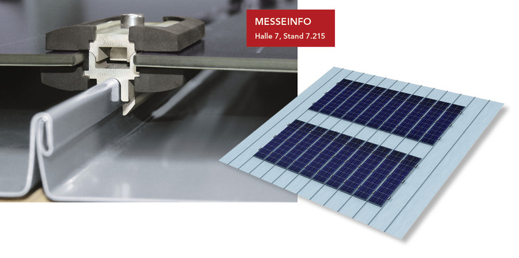 Rheinzink nutzt die Messe Dach + Holz in Stuttgart, um ein optisch und technisch perfekt in die Stehfalzdeckung integriertes Solarsystem vorzustellen. Besonderheit des Systems: Das einfach zu montierende, dachparallele Solarsystem wirkt optisch auf dem Stehfalzdach wie eine dachintegrierte, also nicht aufgeständerte Lösung. Denn die rahmenlosen PV-Module und ihre Befestigung sind genau auf die Scharbreiten der Rheinzink-Stehfalzdeckung abgestimmt, wodurch das metalldachtypische klare Linienbild der Stehfalze erhalten bleibt. Das früher übliche Überbauen der Stehfalze entfällt damit. Stattdessen laufen die Falzlinien sichtbar und ohne Unterbrechung vertikal von der Traufe bis zum First durch. Befestigt werden die Module mit einer neuartigen Klemme am Falz, die nur mit einer Schraube und allein mit vertikaler Presswirkung halt gibt. Dadurch wird vermieden, dass die thermische Längenänderung der Schare behindert wird.