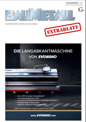 Als Leseprobe im Mini-BAUMETALL-Format ist das neue Extrablatt gleichermaßen für Stammleser wie für zukünftige BAUMETALL-Leser von Bedeutung: Hier erfahren Sie Wichtiges über Veranstaltungen, Onlineangebote oder spannende Workshops. Wissenswert sind auch die Informationen zu den BAUMETALL XXL-Zukunftstagen im Herbst 2022.