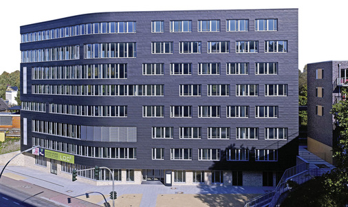 Das LOC 290 steht direkt am S-Bahnhof Bahrenfeld im Hamburger Ortsteil Ottensen und zieht die Blicke der Passanten auf sich. Die dunkle, matte Zinkfassade der sieben Obergeschosse steht im Kontrast zu den in abgesetzten Streifen um das Gebäude laufenden Fensterflächen und dem hellen, zurückgesetzten Sockel des Neubaus. Der voluminöse Charakter des Büroneubaus wird von der für vorbewittertes Titanzink typischen Textur und der dunklen, anthrazitfarbenen Oberfläche betont. Zudem unterstreicht das unregelmäßige Raster der versetzten Zinkprofile die Fassade und erzeugt ein optisches Pendant zur stark gerasterten Struktur des mit Verblendmauerwerk im dänischen Normalformat verkleideten Erdgeschosses. Eine gewisse Leichtigkeit verleihen dem Objekt die 790 m 2 Fensterfläche aus gekoppelten Kunststoff-Fensterelementen, die diese monolithische Einheit durchbrechen: Die Obergeschosse scheinen über dem Sockel zu schweben.