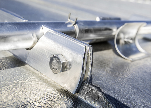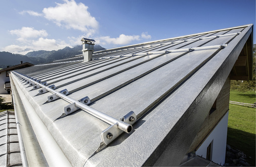 Damit Metalldächer auch nach der Montage von Aufbauten wie Stegen, Trittstufen oder Solar- und Photovoltaikanlagen so gut bleiben wie ihr Ruf, müssen einige Parameter berücksichtigt werden. Dies gilt auch dann, wenn die Stehfalze im Winter durch Schneefangeinrichtungen bzw. punktuell zurückgehaltenen Eis- und Schneemassen stark belastet werden. Bei erhöhten statischen Anforderungen an die Falze kommt es darauf an, eine möglichst gute Haftverteilung zu erreichen. Dies gelingt beispielsweise durch den Einsatz schmaler Scharen sowie die Erhöhung der Haftanzahl. Durch die somit erreichte gleichmäßige Lastverteilung kann sogar die Anzahl der Schneefangreihen (zum Beispiel aus optischen Gründen) reduziert werden. Speziell bei Dachaufbauten wie Schneefang- oder Photovoltaiksystemen ist eine sorgfältige Planung unerlässlich. Neben den Fachregeln des ZVSHK geben beispielsweise auch die Rees-Herstellerrichtlinien sinnvolle Hinweise zum fachgerechten Einbau entsprechender Systeme. Auf der Internetseite www.rees-oberstdorf.de/montageanleitungen.html sind die wichtigsten Grundvoraussetzungen zur sicheren Planung und Ausführung abrufbar.