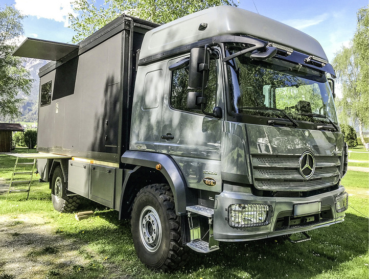 Speziell für Motorhome-Enthusiasten entpuppt sich die Tiroler Gemeinde Kolsass als Eldorado. Die dort ansässige Schatzmeister GmbH macht Kinder, Erwachsene und vor allem Camper froh. Besonders immer dann, wenn Geschäftsführer Christian Schatz einen Campingtraum aus Zirbenholz samt einer feinen Prise Flüssigkunststoff ausliefert. Zirbenbox nennt Schatz seine Wohnmobilaufbauten der Extraklasse und wie der Name vermuten lässt, sind diese komplett aus Zirbenholz gebaut. Die Wände sowie die gesamte Inneneinrichtung samt Küche und Bad werden daraus gefertigt. Auch die Schränke, das Bett und die Eckbank bestehen aus dem besonders leichten und aromatisch duftenden Naturmaterial. Zur luxuriösen Ausstattung der individuell anpassbaren Zirbenboxen gehören neben einer Solar- und Klimaanlage sämtliche Geräte, eine Fußbodenheizung und sogar ein Holzofen, der als Boiler fürs Warmwasser agiert.