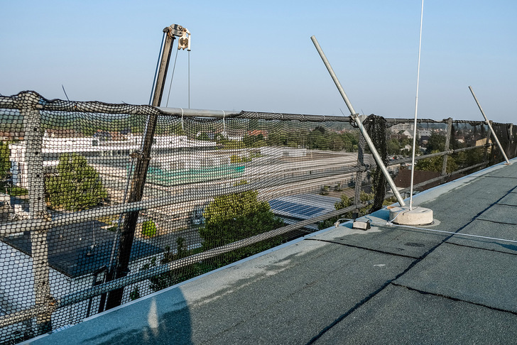Dachsanierung ist nicht gleich Dachsanierung. Die individuellen Anforderungen vor Ort sind entscheidend. Am Siemens-Standort in Karlsruhe war eine vollständige Erneuerung des Dachaufbaus notwendig. Der Absturzsicherer Sifatec passte sein temporäres Seitenschutzsystem an die Gegebenheiten an. Zum einen wurde ein deutlich geringerer Pfostenabstand gewählt, darüber hinaus verhinderte ein engmaschiges Netz das Herabfallen von Gegenständen. Ein zusätzliches Rohr auf Höhe der Dachfläche stoppte rollende Objekte.