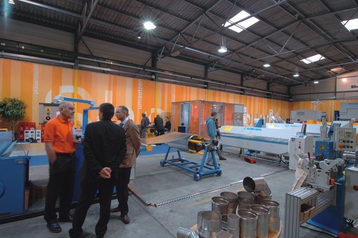 2007 gibt es auch für die Kollegen in der Schweiz einen besonderen Leckerbissen, und das nicht nur am kalten Büffet. Seit bald 125 Jahren beschäftigt sich die Gebrüder Spiegel AG (GS) mit spanloser Metallbearbeitung. Ende Oktober ermöglicht die erste Spengler Expo in Kreuzlingen am Bodensee auf gut 1000 m² zukunftsweisende Einblicke in moderne Technologien. Der neue „Showroom 4“ überzeugt Entscheider der metallbearbeitenden Industrie bereits bei der Eröffnung. Unter fachkundiger Regie führen die GS-Maschinen-Profis, in Kooperation mit der Gabs Spenglereiartikel AG aus Tägerwilen, durch das Programm, in dessen Mittelpunkt natürlich der Spengler steht. Die Repräsentanten führender Maschinenhersteller sind vor Ort und präsentieren Highlights, Neuheiten und interessante Alternativen. Von einfachen Handmodellen bis hin zu modernsten CNC-gesteuerten Motormaschinen, von Kant- oder Schneidtechnik bis hin zur Rollprofilierung und Coil-Lagerung – die komplette Maschinenbandbreite zeigt unterschiedlichste Bearbeitungsmöglichkeiten für interessierte Spengler und Lüftungsanlagenbauer auf.