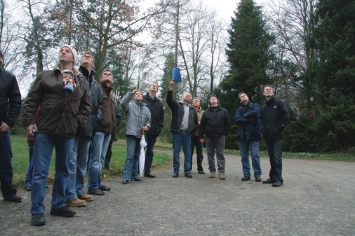 Matthias Weber aus Saarmund führte seine staunenden Kollegen durch das größte Ensemble deutscher Welterbestätten (Weltkultur- und Naturerbe seit 1990). Ob bei der Dachbesichtigung der Orangerie oder während der Berichterstattung zur Dachsanierung der Fasanerie – Matthias Weber sprühte vor Begeisterung und erläuterte zahlreiche Details seiner Arbeiten. Die Hintergründe im Bezug auf die Zusammenarbeit mit der Denkmalschutzbehörde interessierten die „Baumetaller“ besonders.