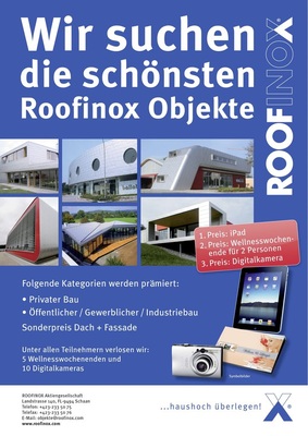 Aus Edelstahl entstehen beeindruckende Gebäudehüllen und Metalldächer. Fassaden werden dabei ebenso mit legiertem Stahl bekleidet wie Dachflächen, Decken oder Innenbereiche. Dem Gestaltungsspielraum sind dabei nahezu keine Grenzen gesetzt und durch die zur Verfügung stehende Vielzahl an Oberflächen ergeben sich zahlreiche Variationen. Ob „Roofinox 5000 Classic“, „Roofinox Zinn“, „Roofinox Kupfer“, „Roofinox Pearl“ oder „Roofinox +Plus“ – immer mehr Klempnerfachbetriebe setzen auf die Vorzüge optisch ansprechenden Edelstahls. Um die vielfältigen Einsatzmöglichkeiten aufzuzeigen, sucht Roofinox herausragende Bauobjekte in den Kategorien „privater Bau“ und „öffentlicher, gewerblicher und industrieller Bau“. Außerdem wird ein Sonderpreis in der Kategorie „Dach und Fassade“ vergeben. Die Prämierung hängt nicht nur von der Architektur der Objekte, sondern auch sehr stark von der handwerklichen Qualität der Arbeit sowie der kreativen Umsetzung ab. Aus diesem Grund haben Großprojekte ebensolche Siegchancen wie die kleinflächige Anwendung von Roofinox. Zielsetzung ist es aufzuzeigen, in welcher breiten Vielfalt Roofinox eingesetzt werden kann und was alles mit bürstgewalzten, perlgestrahlten, verzinnten und geprägten Edelstahl-Oberflächen möglich ist. Die Teilnehmer profitieren zusätzlich von der medialen Präsenz ihrer Objekte.