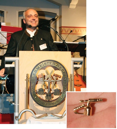SMV-Vorstand Werner Fünfer staunte nicht schlecht, als er von ZVSHK-Bundesfachgruppenleiter Ulrich Leib auf das Podium gerufen wurde, um eine besondere Auszeichnung entgegenzunehmen. Mit besten Grüßen von Spenglermeister Heinz Lummel (Ehrenvorsitzender des Europäischen Klempner- und Kupferschmiedemuseums in Karlstadt) überreichte Ulrich Leib die 15. Goldene Lötlampe. Werner Fünfer erhielt die höchste Auszeichnung der Klempner für seine jahrelangen Bemühungen für die Branche und für die enge Zusammenarbeit des SMV mit dem ZVSHK. Der sichtlich gerührte SMV-Vorstand wies eindringlich darauf hin, dass bisher erreichte Ziele ohne die vorbildliche Zusammenarbeit der SMV-Mitglieder niemals erreichbar gewesen wären.