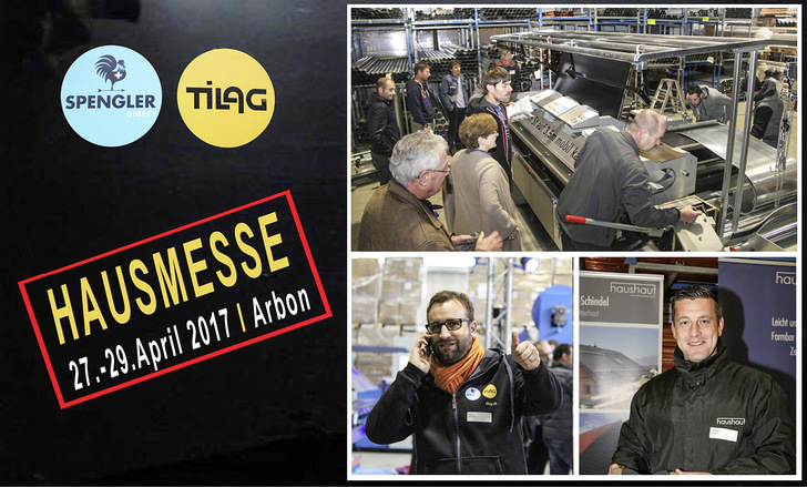 Ende April 2017 luden die Spezialisten von Spengler Direct und Tilag zur Hausmesse nach Arbon in die Schweiz ein. Im Rahmen der ersten gemeinsamen und somit für Dachdecker und Spengler gleichermaßen interessanten Ausstellung konnten sich die Besucher umfänglich über Flachdachzubehör, Metalle, Halbzeuge, Werkzeuge, Maschinen und Zubehör informieren. Gemeinsam mit zahlreichen Ausstellern präsentierten Walter Müntener (ehem. GF, Spengler Direct AG) und Daniel Keller (GF, Tilag AG & Spengler Direct AG) mit ihrem Team eine beachtliche Produktvielfalt. Diese reichte von Rundbogenkehlen des Herstellers Krehle oder Resitrix-Dichtungsbahnen über Doppelbieger und Langabkantmaschinen der Marke Variobend bis hin zu Bauornamenten von Kisso.