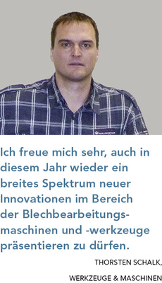 Übrigens können Sie sich einen ersten Eindruck sofort verschaffen: Den Fachbericht über die Ausstellung der Blechmasters 2015 finden Sie auf Seite 62 in vorliegender Ausgabe.